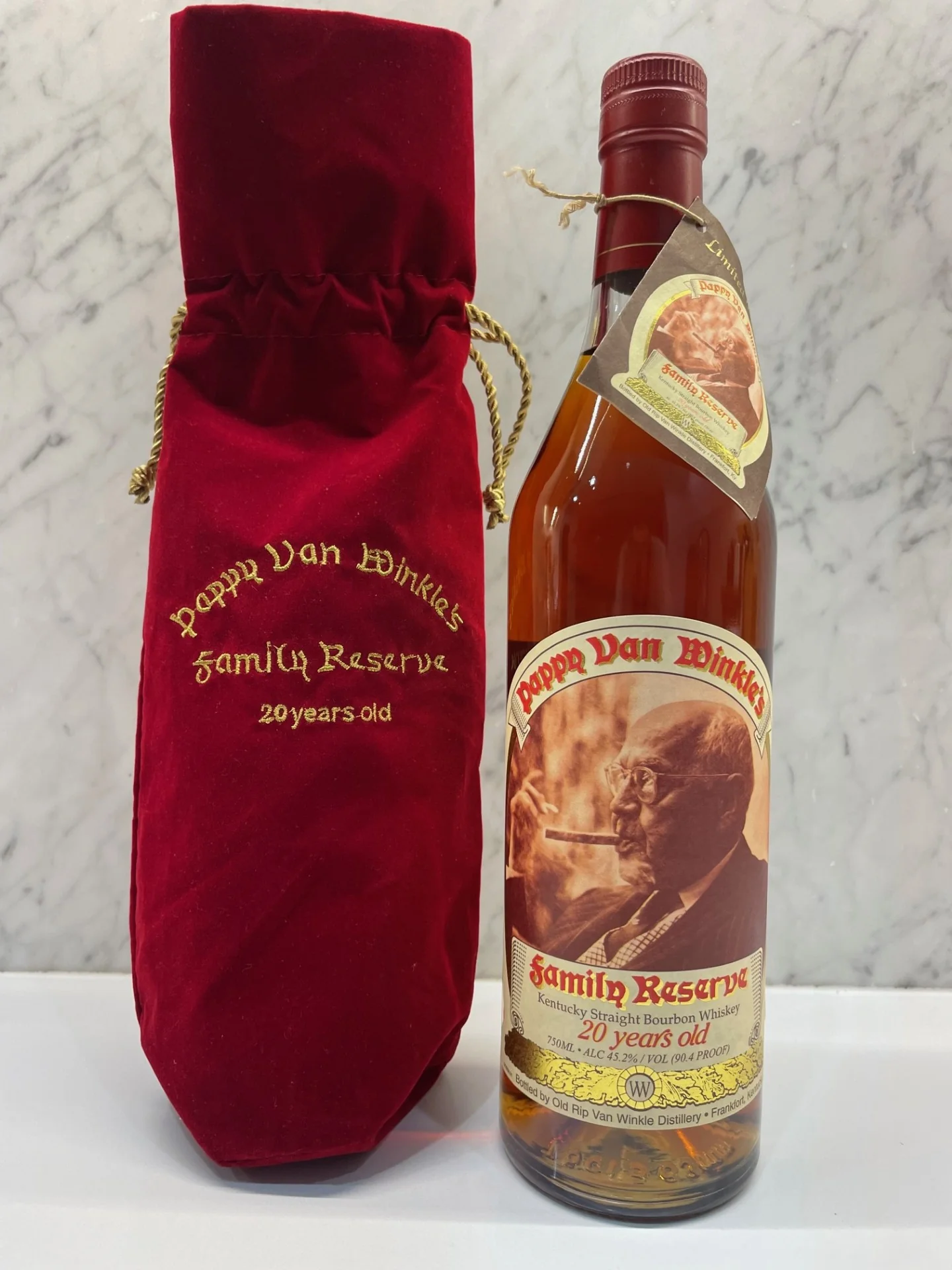 The Pappy Van Winkle 20-Year Bourbon is a whiskey legend. Known for its deep, complex character and incredible balance achieved through two decades of careful aging.
